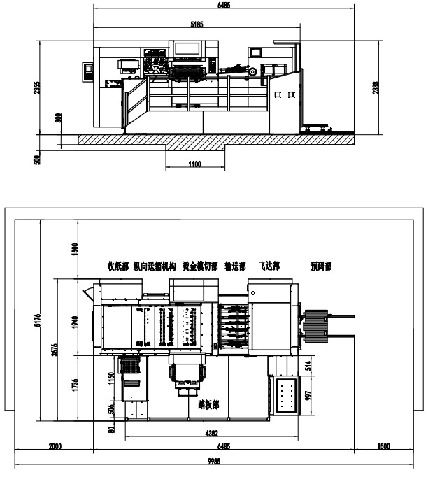 | 整機尺寸 | 6485×3676×2388mm(L×W×H) (長含預(yù)上紙軌道;寬含腳踏板) |