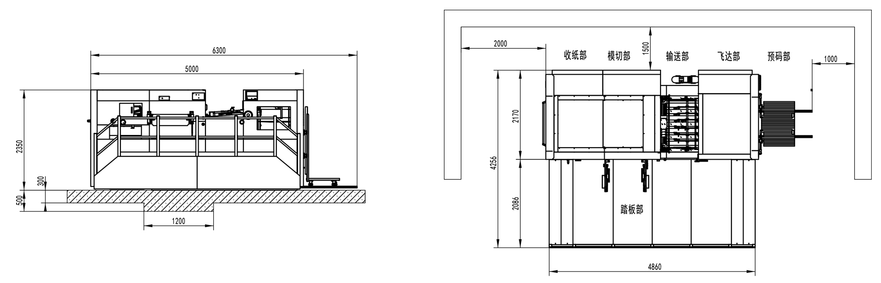 | 整機尺寸 | 6300×4256×2350mm (L×W×H) (長含預上紙軌道;寬含腳踏板) |