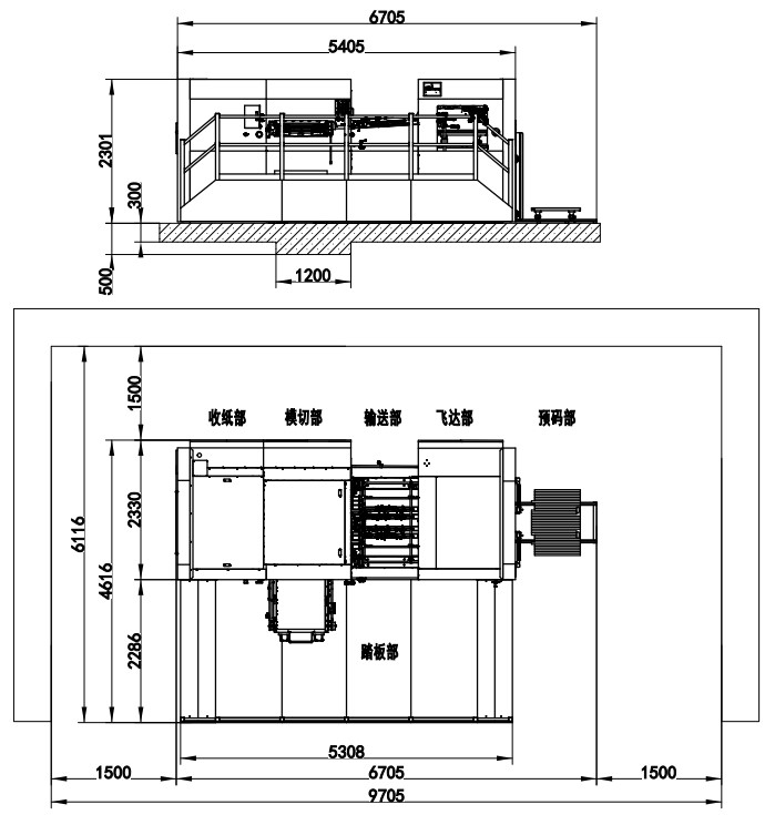 | 整機尺寸 | 6705×4616×2301mm(長含預上紙軌道;寬含腳踏板) |