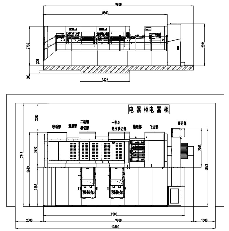 | 整機尺寸(含板框預裝架) | 9800×7613×2891mm |