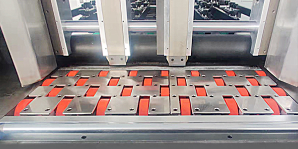 ● 特殊的聚乙脂送紙膠輪配合柵欄式托紙架和氣墊確保厚重翹曲紙板輸送順暢和紙板的精準到位。