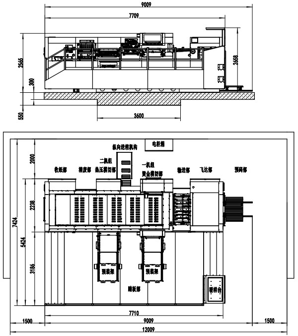 | 整機(jī)尺寸(含板框預(yù)裝架) | 9009×7424×2658mm (L×W×H) (長含預(yù)上紙軌道;寬含腳踏板) |